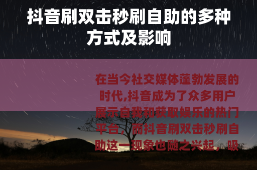 在当今社交媒体蓬勃发展的时代,抖音成为了众多用户展示自我和获取娱乐的热门平台,而抖音刷双击秒刷自助这一现象也随之兴起,吸引了不少人的关注。
