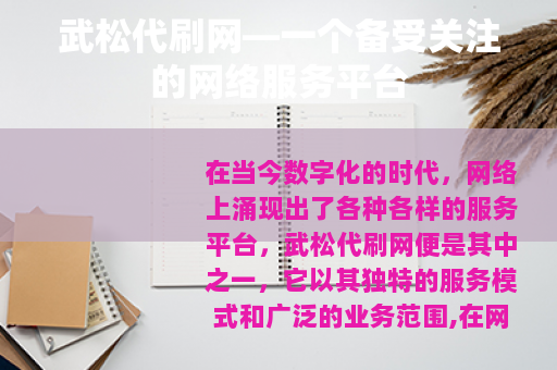 在当今数字化的时代,网络上涌现出了各种各样的服务平台,武松代刷网便是其中之一,它以其独特的服务模式和广泛的业务范围,在网络世界中逐渐崭露头角。