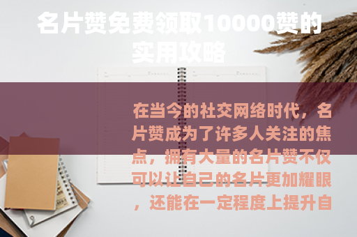 在当今的社交网络时代,名片赞成为了许多人关注的焦点,拥有大量的名片赞不仅可以让自己的名片更加耀眼,还能在一定程度上提升自己在社交平台上的人气和影响力,而现在,有一种令人兴奋的机会,那就是可以免费领取10000个名片赞,这对于广大社交爱好者来说,无疑是一个巨大的福利。