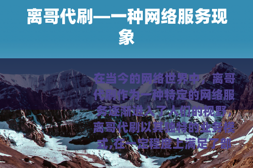 在当今的网络世界中,离哥代刷作为一种特定的网络服务逐渐进入了人们的视野,离哥代刷以其独特的业务模式,在一定程度上满足了部分用户的特定需求。