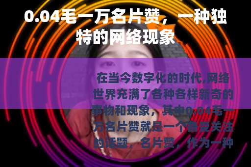 在当今数字化的时代,网络世界充满了各种各样新奇的事物和现象,其中0.04毛一万名片赞就是一个备受关注的话题,名片赞,作为一种在社交网络平台上体现个人受欢迎程度的方式,在网络社交中有着独特的地位,而0.04毛一万名片赞的出现,更是引发了众多用户的兴趣和讨论。