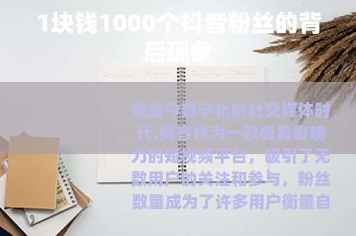 在当今数字化的社交媒体时代,抖音作为一款极具影响力的短视频平台,吸引了无数用户的关注和参与,粉丝数量成为了许多用户衡量自身在平台上影响力和价值的重要指标之一,而市场上出现了一种声称1块钱就能买到1000个抖音粉丝的现象,这引起了广泛的讨论和不同的看法。