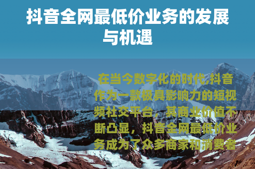 在当今数字化的时代,抖音作为一款极具影响力的短视频社交平台,其商业价值不断凸显,抖音全网最低价业务成为了众多商家和消费者关注的焦点。