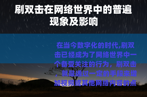 在当今数字化的时代,刷双击已经成为了网络世界中一个备受关注的行为,刷双击,就是通过一定的手段来增加视频或其他网络内容的点赞数和双击量。