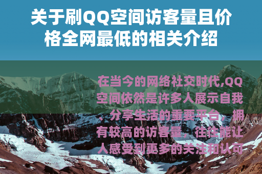 在当今的网络社交时代,QQ空间依然是许多人展示自我、分享生活的重要平台,拥有较高的访客量,往往能让人感受到更多的关注和认可,而在众多提升QQ空间访客量的方式中,有一种刷访客量的服务备受关注,其声称在全网具有最低的价格。
