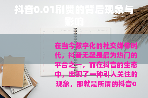 在当今数字化的社交媒体时代,抖音无疑是最为热门的平台之一,而在抖音的生态中,出现了一种引人关注的现象,那就是所谓的抖音0.01刷赞服务。