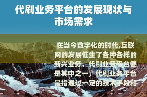 代刷业务平台作为互联网时代的一种新兴业务模式,在满足用户需求、推动网络经济发展等方面发挥了一定的作用,虽然它在发展过程中面临着一些挑战和问题,但随着市场的不断规范和技术的不断进步,相信代刷业务平台未来有望实现更加健康、可持续的发展,为用户提供更加优质、高效的服务,在互联网的广阔天地中找到自己的一席之地。