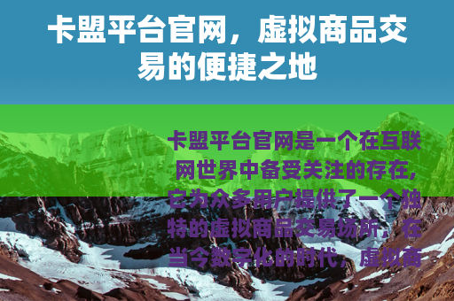 卡盟平台官网是一个在互联网世界中备受关注的存在,它为众多用户提供了一个独特的虚拟商品交易场所。