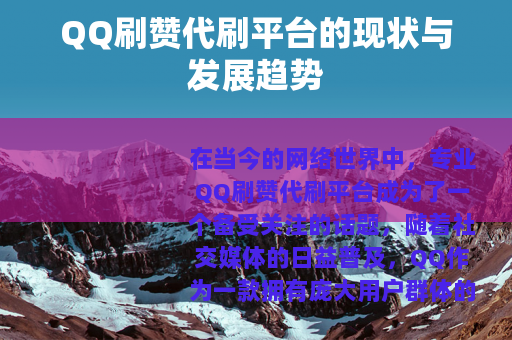 专业QQ刷赞代刷平台在未来的发展前景广阔,但也需要在合法合规、技术创新、服务优化等多方面不断努力,才能在激烈的市场竞争中立足,为用户提供更加优质、高效、安全的刷赞服务,推动网络社交行业的持续发展,为社会创造更多的价值和财富,我们期待着专业QQ刷赞代刷平台在未来能够不断发展壮大,为我们的网络社交生活带来更多的便利和惊喜。