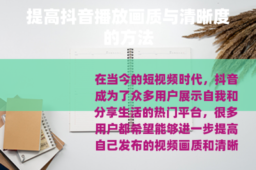 在当今的短视频时代,抖音成为了众多用户展示自我和分享生活的热门平台,很多用户都希望能够进一步提高自己发布的视频画质和清晰度,以吸引更多的观众,获得更好的播放效果,以下是一些可以帮助你提高抖音播放画质和清晰度的实用方法。