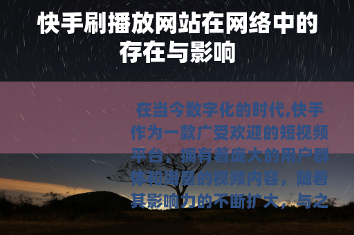 在当今数字化的时代,快手作为一款广受欢迎的短视频平台,拥有着庞大的用户群体和海量的视频内容,随着其影响力的不断扩大,与之相关的各种现象也应运而生,其中就包括快手刷播放网站。