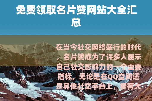 在当今社交网络盛行的时代,名片赞成为了许多人展示自己社交影响力的一个重要指标,无论是在QQ空间还是其他社交平台上,拥有大量的名片赞都能让人感觉备受关注和认可,众多免费领取名片赞的网站应运而生,为用户提供了一种快速增加名片赞数量的途径。