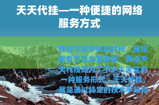 在当今数字化的时代,网络服务日益丰富多样,其中天天代挂成为了不少人关注的一种服务形式,天天代挂,就是通过特定的技术手段和平台,帮助用户在一些需要持续在线或进行特定操作的网络应用中实现自动挂机的功能。