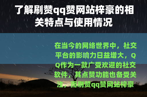 在当今的网络世界中,社交平台的影响力日益增大,QQ作为一款广受欢迎的社交软件,其点赞功能也备受关注,而刷赞qq赞网站梓豪在这样的背景下应运而生,成为了不少人热议的话题。