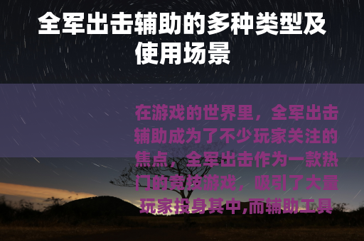 在游戏的世界里,全军出击辅助成为了不少玩家关注的焦点,全军出击作为一款热门的竞技游戏,吸引了大量玩家投身其中,而辅助工具也随之应运而生。