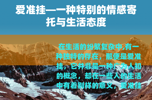 在生活的纷繁复杂中,有一种独特的存在,那便是爱准挂,它并非是一种广为人知的概念,却在一些人的生活中有着别样的意义。
