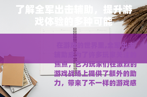 在游戏的世界里,全军出击辅助成为了许多玩家关注的焦点,它为玩家们在激烈的游戏战场上提供了额外的助力,带来了不一样的游戏感受。