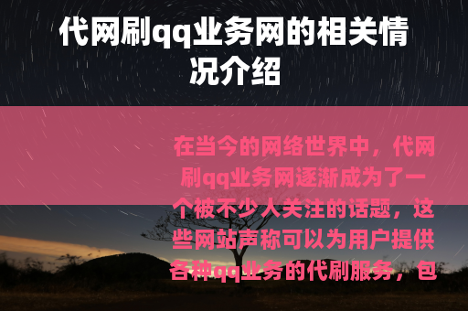 在当今的网络世界中,代网刷qq业务网逐渐成为了一个被不少人关注的话题,这些网站声称可以为用户提供各种qq业务的代刷服务,包括但不限于qq会员、黄钻、绿钻等各种钻类业务,以及qq等级提升、空间人气增加等服务。
