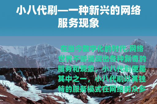 在当今数字化的时代,网络世界不断涌现出各种新奇的服务和现象,小八代刷便是其中之一,小八代刷以其独特的服务模式在网络的众多角落中崭露头角。