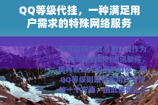 在互联网的世界里,QQ作为一款经典的即时通讯软件,拥有着庞大的用户群体,而QQ等级则是许多用户关注的一个方面,由此便催生了QQ等级代挂这一服务。