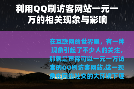 在互联网的世界里,有一种现象引起了不少人的关注,那就是声称可以一元一万访客的QQ刷访客网站,这一现象在网络社交的大环境下逐渐成为了一个热门话题。