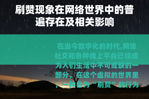 在当今数字化的时代,网络社交和各种线上平台已经成为人们生活中不可或缺的一部分,在这个虚拟的世界里,一种名为“刷赞”的行为逐渐兴起并引起了广泛的关注,刷赞,就是通过一定的手段来增加社交媒体上的点赞数量,从而营造出一种受欢迎和高关注度的表象。