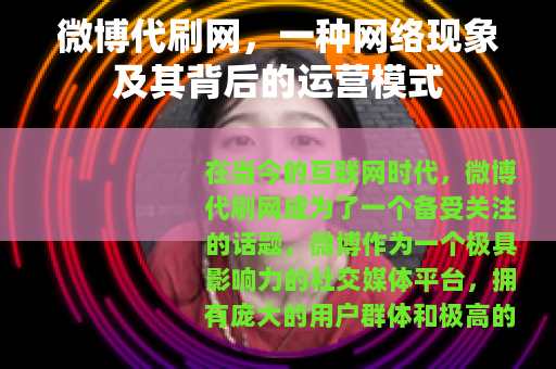 在当今的互联网时代,微博代刷网成为了一个备受关注的话题,微博作为一个极具影响力的社交媒体平台,拥有庞大的用户群体和极高的活跃度,而微博代刷网则是在这样的背景下应运而生的一种特殊的网络服务模式。