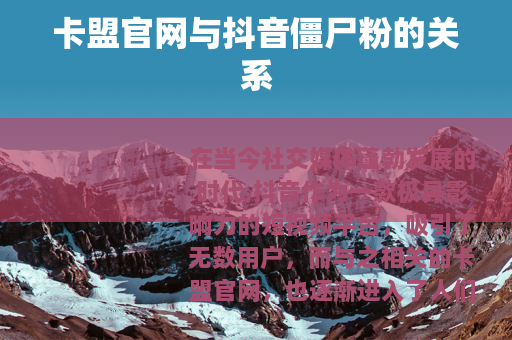 在当今社交媒体蓬勃发展的时代,抖音作为一款极具影响力的短视频平台,吸引了无数用户,而与之相关的卡盟官网,也逐渐进入了人们的视野,尤其是其与抖音僵尸粉之间的联系,值得我们去了解。