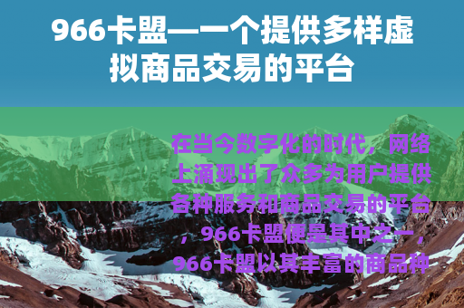 在当今数字化的时代,网络上涌现出了众多为用户提供各种服务和商品交易的平台,966卡盟便是其中之一,966卡盟以其丰富的商品种类和相对便捷的交易模式,吸引了不少用户的关注。