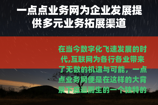 在当今数字化飞速发展的时代,互联网为各行各业带来了无数的机遇与可能,一点点业务网便是在这样的大背景下应运而生的一个独特的平台。