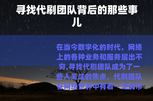 在当今数字化的时代,网络上的各种业务和服务层出不穷,寻找代刷团队成为了一些人关注的焦点。