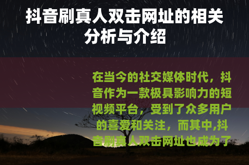 在当今的社交媒体时代,抖音作为一款极具影响力的短视频平台,受到了众多用户的喜爱和关注,而其中,抖音刷真人双击网址也成为了一个热门话题。