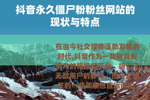 在当今社交媒体蓬勃发展的时代,抖音作为一款极具影响力的短视频平台,吸引了无数用户的参与,而与之相关的一些现象也应运而生,其中就包括抖音永久僵尸粉粉丝网站。