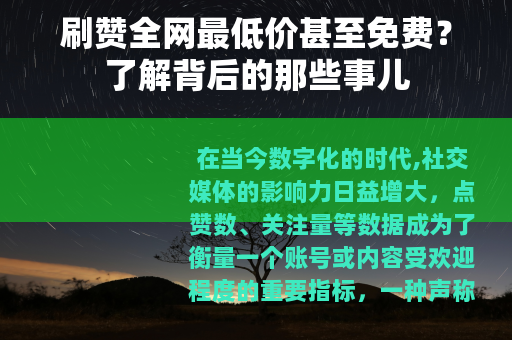 在当今数字化的时代,社交媒体的影响力日益增大,点赞数、关注量等数据成为了衡量一个账号或内容受欢迎程度的重要指标,一种声称能提供刷赞服务且价格全网最低甚至免费的现象悄然兴起,吸引了众多人的目光。
