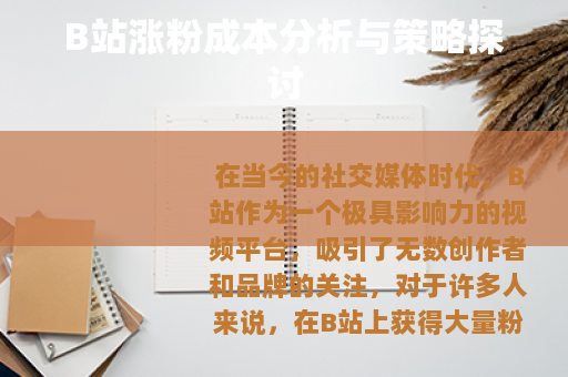 在当今的社交媒体时代,B站作为一个极具影响力的视频平台,吸引了无数创作者和品牌的关注,对于许多人来说,在B站上获得大量粉丝是实现个人影响力和商业价值的重要途径,要实现这一目标,就不得不考虑涨粉成本这一关键因素。