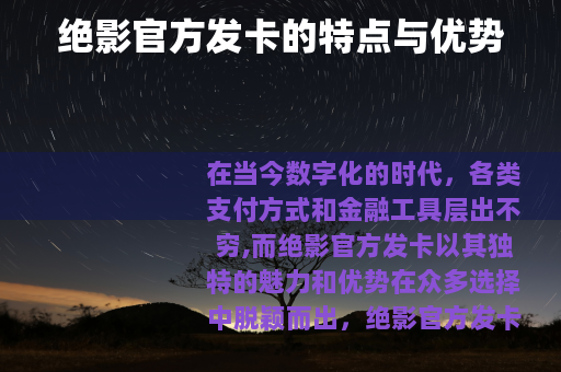 在当今数字化的时代,各类支付方式和金融工具层出不穷,而绝影官方发卡以其独特的魅力和优势在众多选择中脱颖而出。