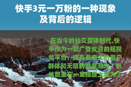 在当今的社交媒体时代,快手作为一款广受欢迎的短视频平台,拥有着庞大的用户群体和无限的发展潜力,粉丝数量在一定程度上成为了衡量一个账号影响力和价值的重要指标,而“快手3元一万粉”这样的现象也随之悄然出现。