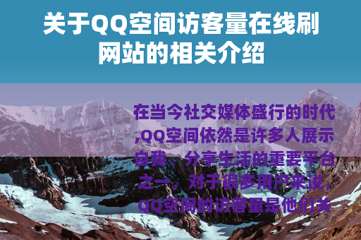 在当今社交媒体盛行的时代,QQ空间依然是许多人展示自我、分享生活的重要平台之一,对于很多用户来说,QQ空间的访客量是他们关注的一个重要数据,较高的访客量往往能带来一种满足感和成就感,也能让自己的动态得到更多人的关注,便出现了一些所谓的QQ空间访客量在线刷网站。
