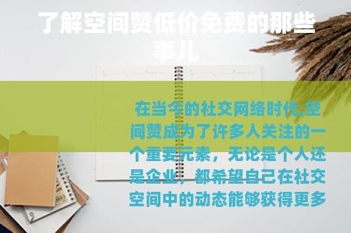 在当今的社交网络时代,空间赞成为了许多人关注的一个重要元素,无论是个人还是企业,都希望自己在社交空间中的动态能够获得更多的点赞,以此来展示自己的人气和影响力,而空间赞低价免费的现象也随之应运而生,这一现象背后有着诸多值得我们深入了解的方面。