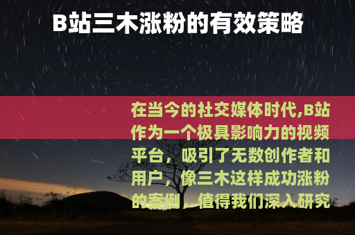 在当今的社交媒体时代,B站作为一个极具影响力的视频平台,吸引了无数创作者和用户,像三木这样成功涨粉的案例,值得我们深入研究和学习。