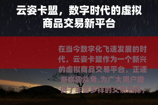 云姿卡盟在数字经济的浪潮中,凭借其丰富的商品种类、便捷的操作流程、优质的用户服务以及良好的创业机会,正逐渐成为虚拟商品交易领域的一颗璀璨明星,它为用户提供了一个高效、安全、便捷的交易平台,满足了用户在数字娱乐方面的多样化需求,同时也为创业者创造了一个充满机遇的发展空间,推动着虚拟商品交易行业的不断创新和发展,云姿卡盟有望继续拓展业务,不断提升自身的服务质量和竞争力,为用户和创业者带来更多的价值和惊喜,在数字时代的舞台上绽放更加耀眼的光芒。