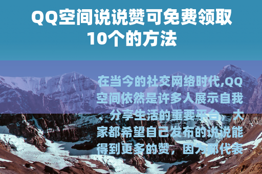 在当今的社交网络时代,QQ空间依然是许多人展示自我、分享生活的重要平台,大家都希望自己发布的说说能得到更多的赞,因为那代表着朋友们的关注和认可呀,今天就来给大家介绍一种可以免费领取10个QQ空间说说赞的方法。