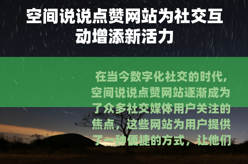 在当今数字化社交的时代,空间说说点赞网站逐渐成为了众多社交媒体用户关注的焦点,这些网站为用户提供了一种便捷的方式,让他们能够在虚拟的社交空间中获得更多的关注和认可,从而进一步丰富了人们的社交体验。