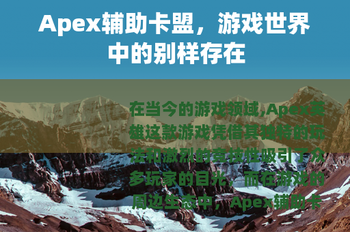 在当今的游戏领域,Apex英雄这款游戏凭借其独特的玩法和激烈的竞技性吸引了众多玩家的目光,而在游戏的周边生态中,Apex辅助卡盟也逐渐成为了一个备受关注的话题。