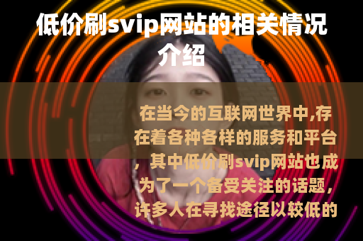 在当今的互联网世界中,存在着各种各样的服务和平台,其中低价刷svip网站也成为了一个备受关注的话题,许多人在寻找途径以较低的成本获取各种会员服务的高级权限,而这些低价刷svip网站便应运而生。