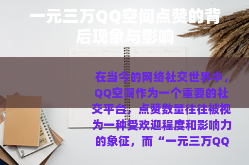 在当今的网络社交世界中,QQ空间作为一个重要的社交平台,点赞数量往往被视为一种受欢迎程度和影响力的象征,而“一元三万QQ空间点赞”这样的现象也随之悄然兴起,引发了一系列值得关注的话题。