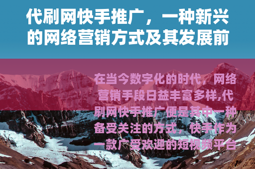 在当今数字化的时代,网络营销手段日益丰富多样,代刷网快手推广便是其中一种备受关注的方式。