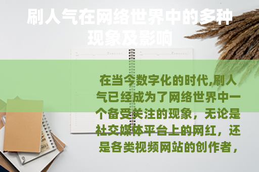 在当今数字化的时代,刷人气已经成为了网络世界中一个备受关注的现象,无论是社交媒体平台上的网红,还是各类视频网站的创作者,刷人气的行为都或多或少地存在着。