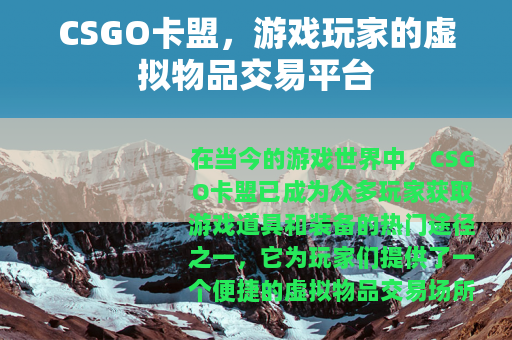 在当今的游戏世界中,CSGO卡盟已成为众多玩家获取游戏道具和装备的热门途径之一,它为玩家们提供了一个便捷的虚拟物品交易场所,满足了玩家对于个性化游戏体验的追求。