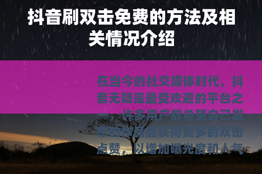 在当今的社交媒体时代,抖音无疑是最受欢迎的平台之一,许多用户都希望自己发布的作品能获得更多的双击点赞,以增加曝光度和人气,而抖音刷双击免费的话题也因此备受关注。